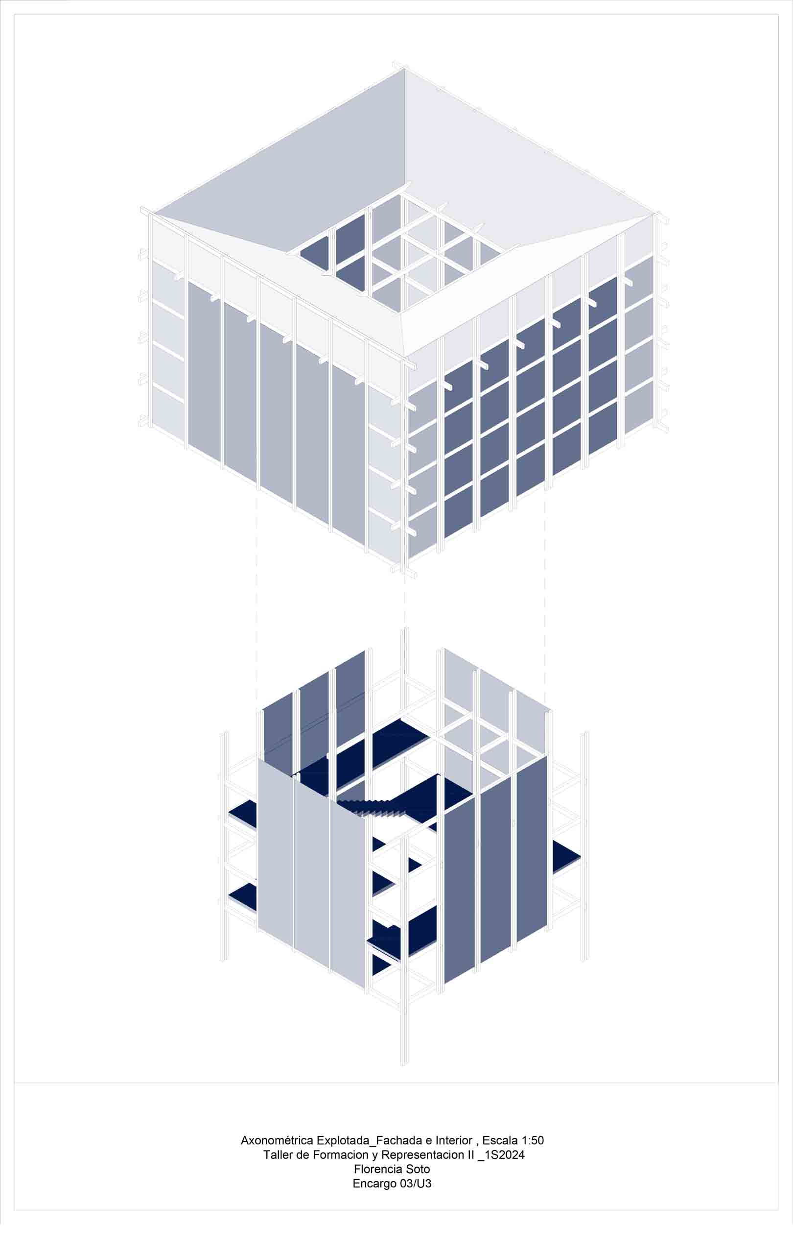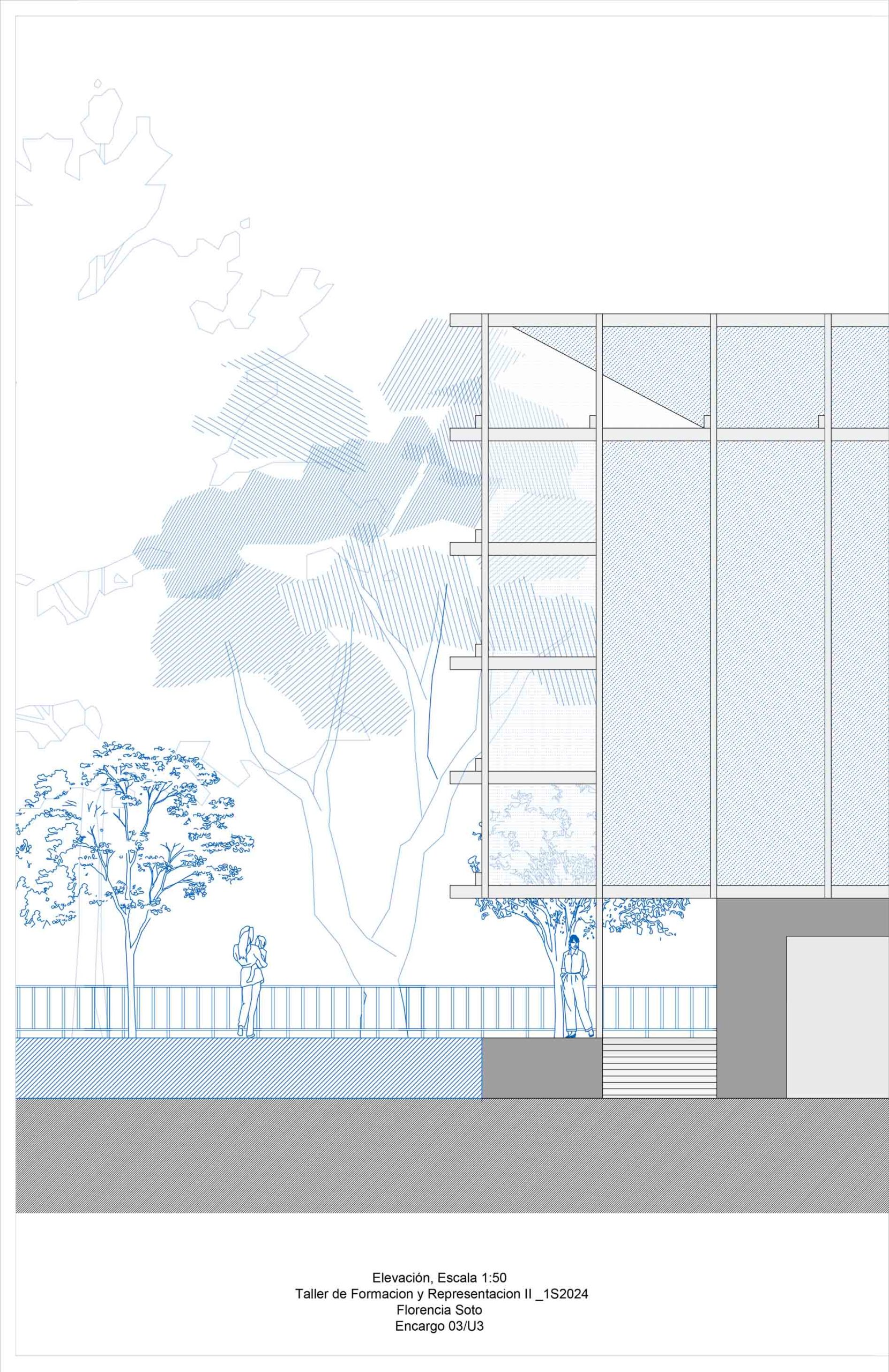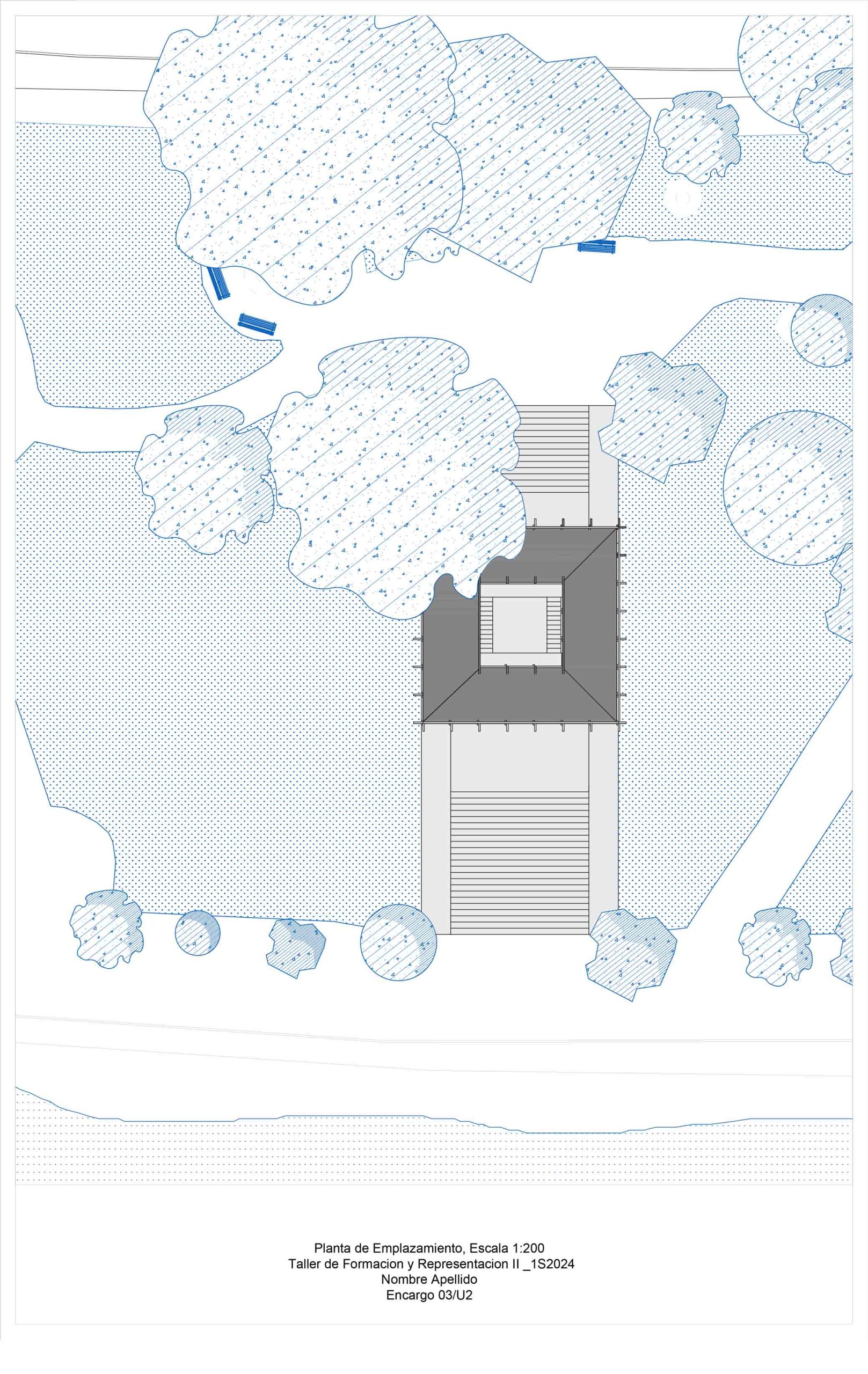 Centrado en el manejo de formas arquitectónicas y configuraciones espaciales y materiales, el taller utiliza la representación para observar y proyectar, fomentando el pensamiento creativo a través del levantamiento y la fotografía con técnicas de cianotipia. Bajo dos lógicas materiales —la masa y la trama— nueve ejercicios proyectuales examinaron las cualidades del material, la luz, la estructura, y las atmósferas, culminando en una formulación final: un café literario en el Parque de las Esculturas de Providencia.
